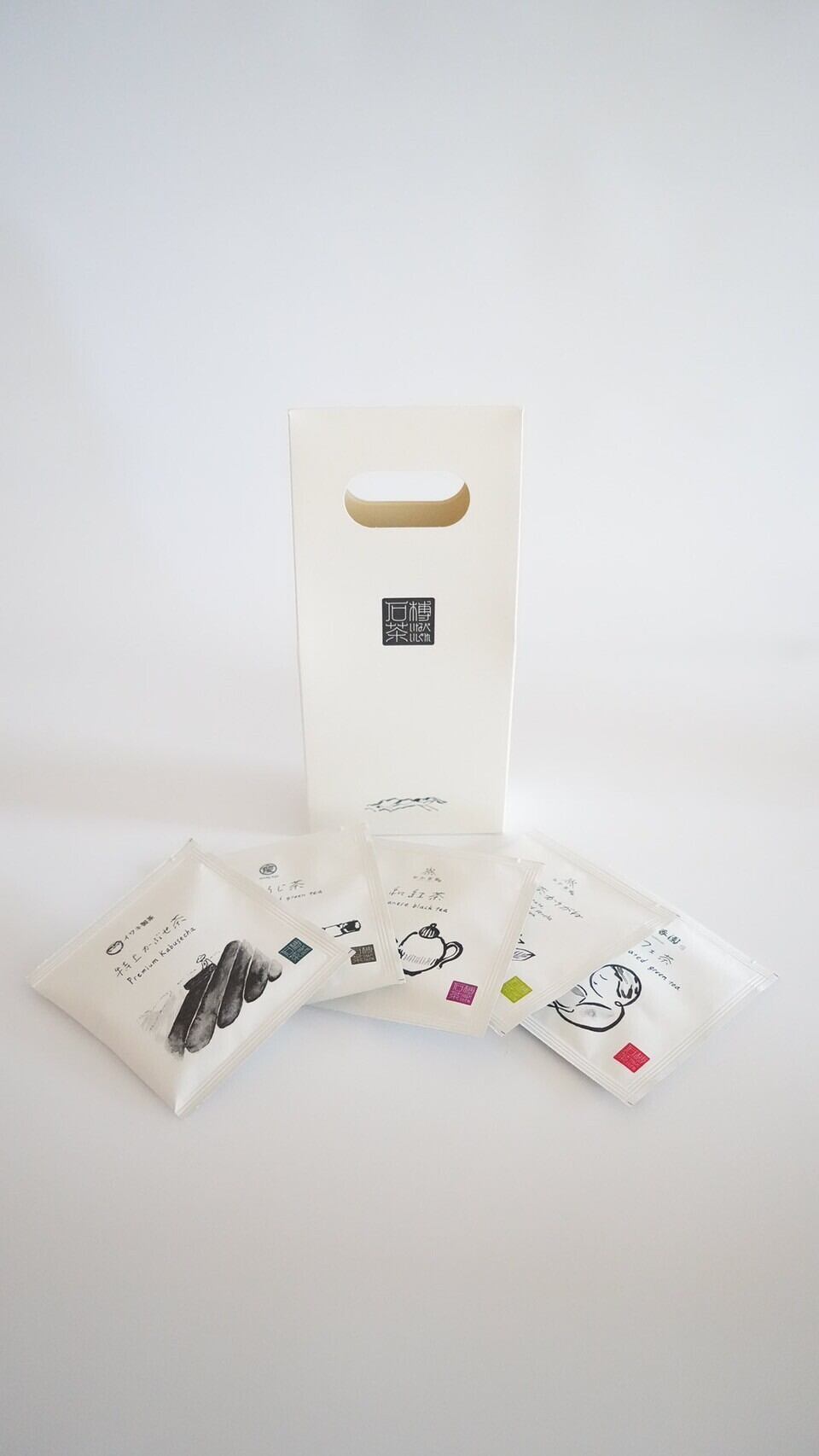 いなべ市大安町・石榑地区の4茶農家(イワキ製茶、マル信緑香園、丸慶、岡製茶)と連携した、伊勢茶「石榑茶」のティーバッグ5種セット。