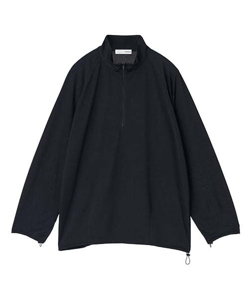 テントやカーテンにも使用される酸化チタンを配合した遮熱効果のあるポリエステル糸とスマイルコットンを交編して実現したハイブリット素材でオーバーサイズに仕上げたハーフジッププルオーバー。袖口、裾にドローコードが付属し、スポーティながらもトレンド感もあり合わせやすい形です。日傘に近い高い遮熱・UVカット率を持ち、冷感機能もあるので、夏場やアウトドアシーンでも活躍します。